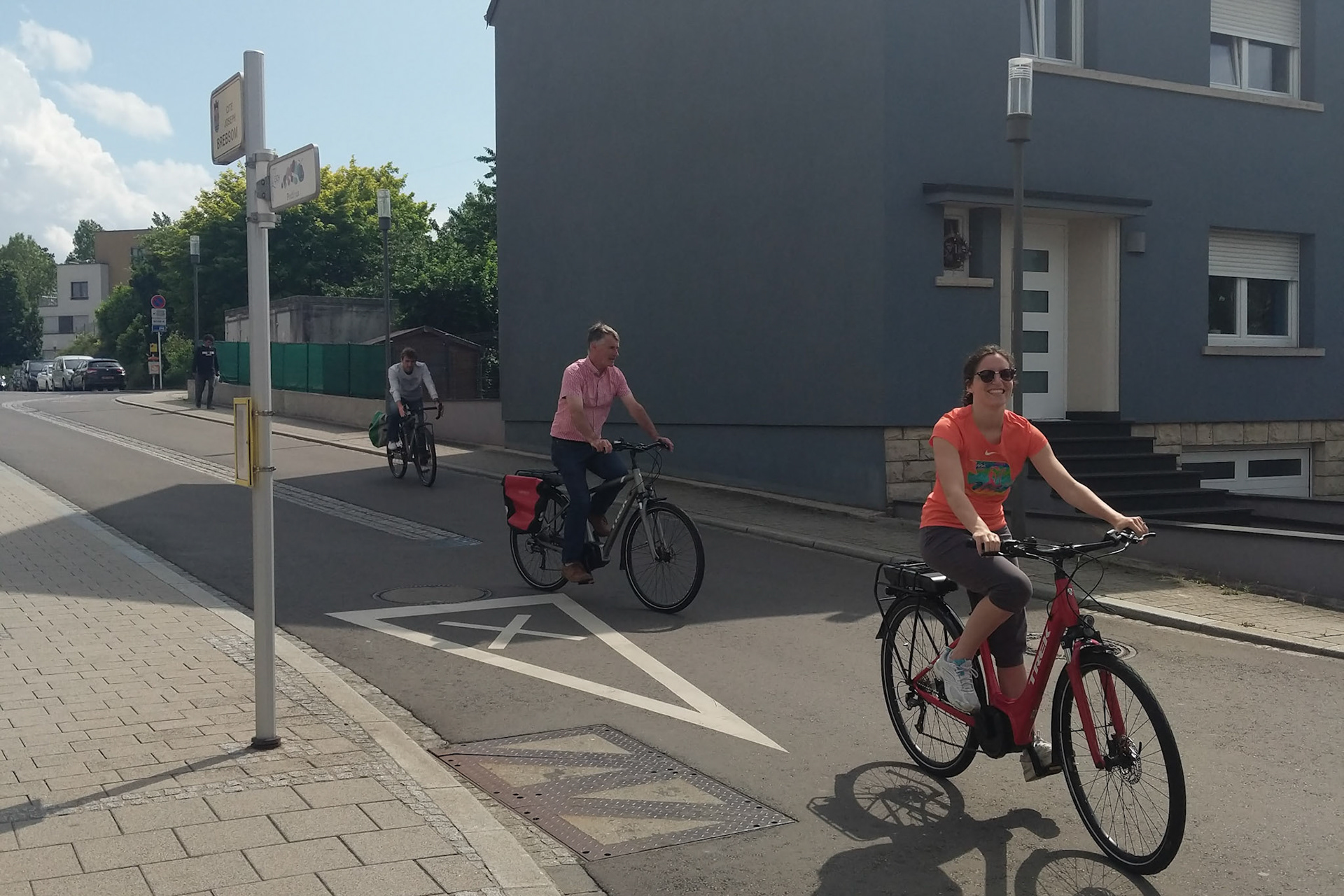 La famille d'Adrien vient à Esch pour l'anniversaire d'Augustin. Tour à Vélo à Mondercange. Vélo électrique JB.