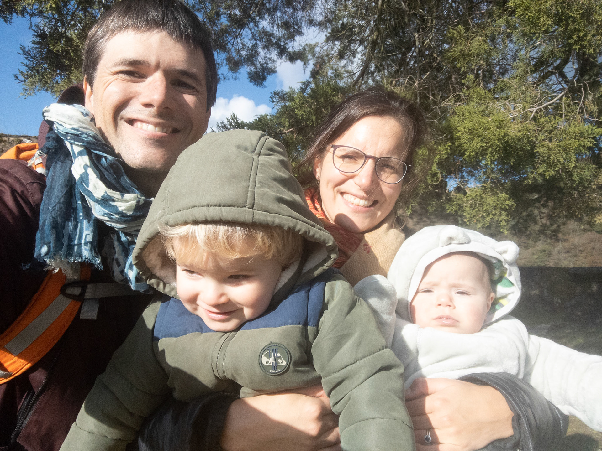 Le papa et ses deux tous jeunes enfants. L'aventure à Noureuil
