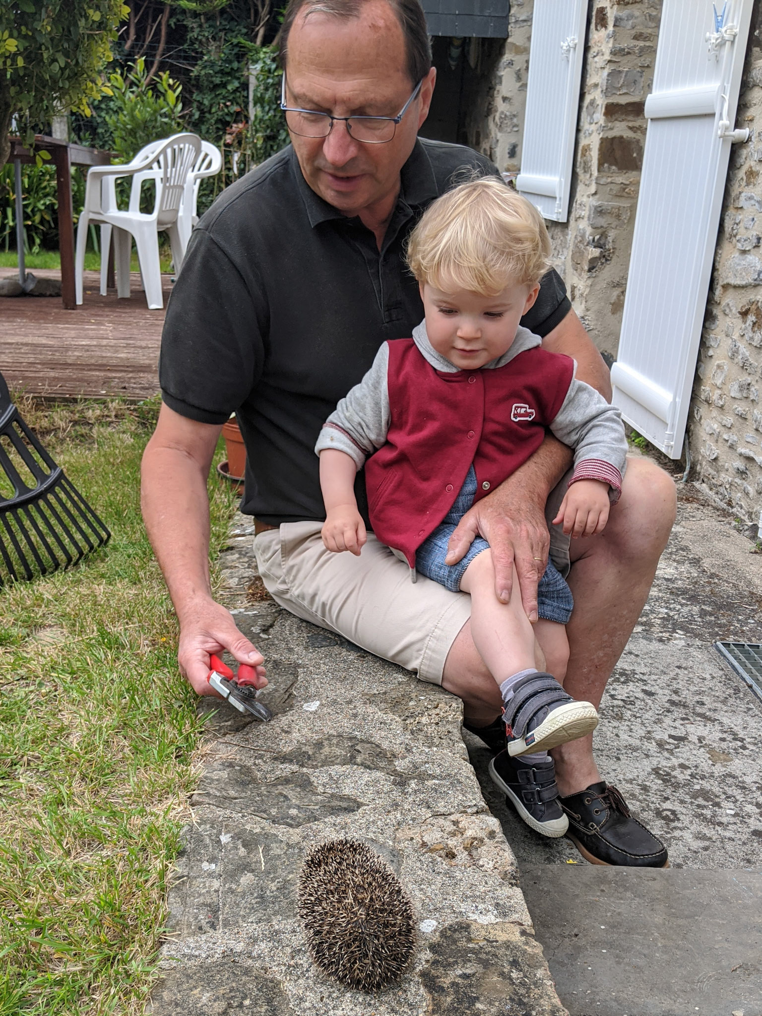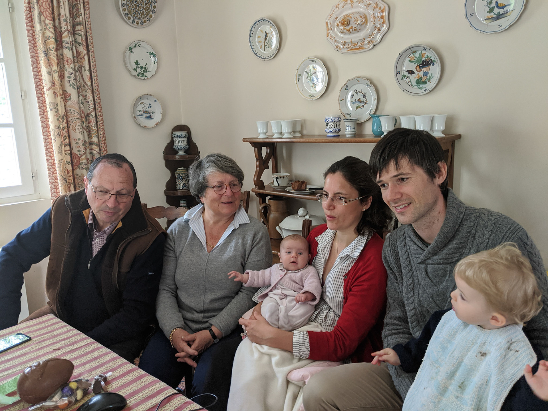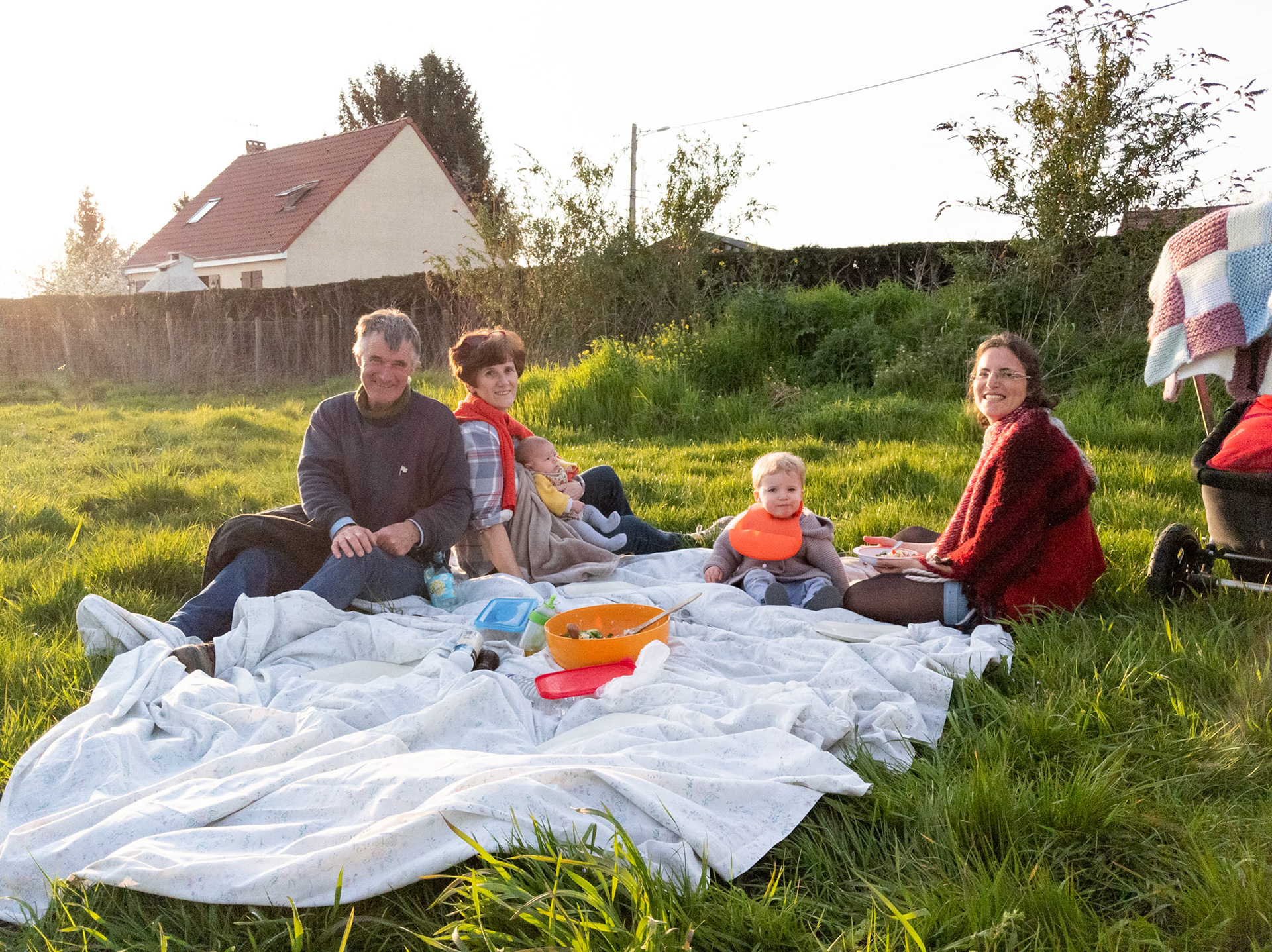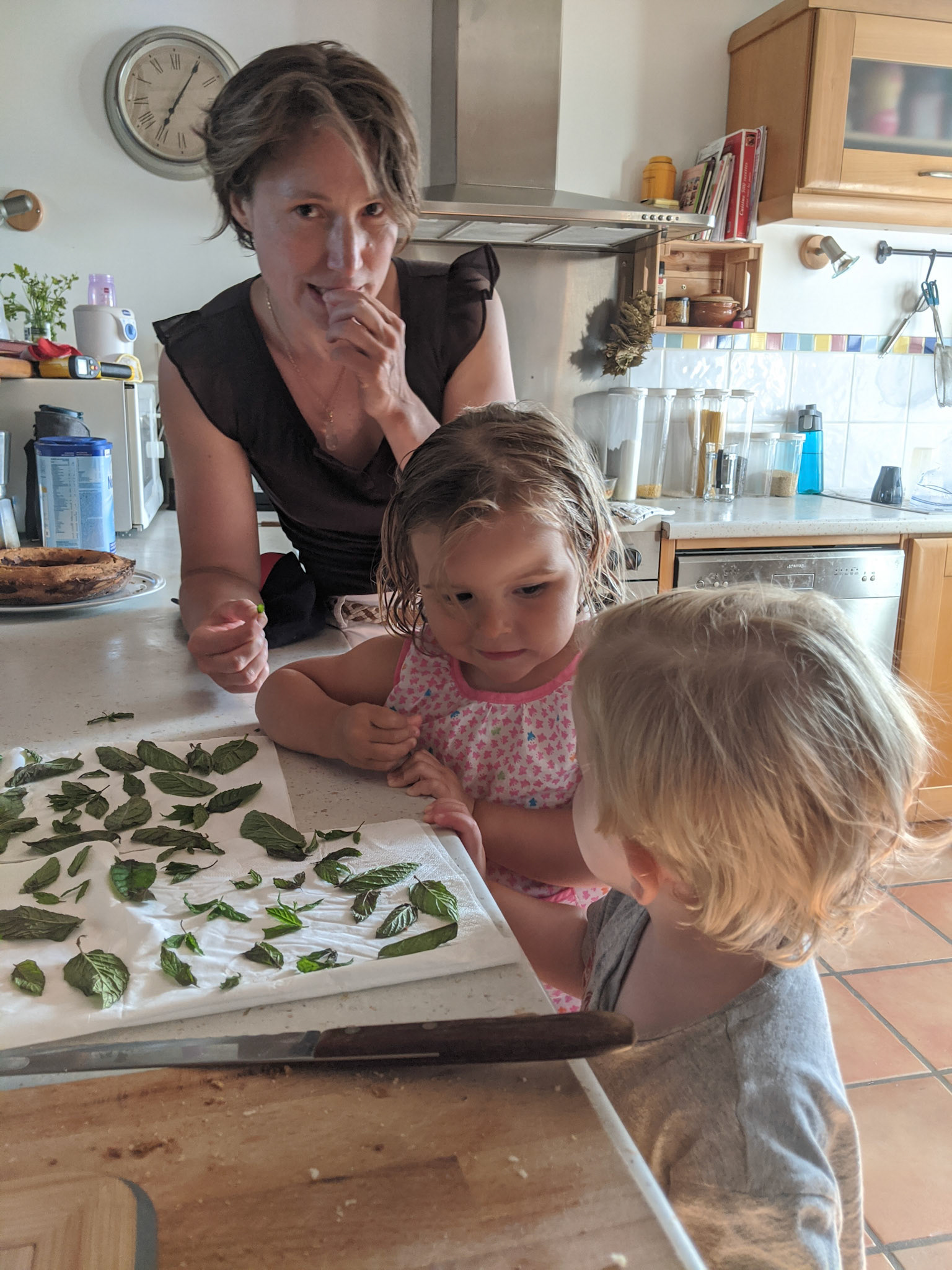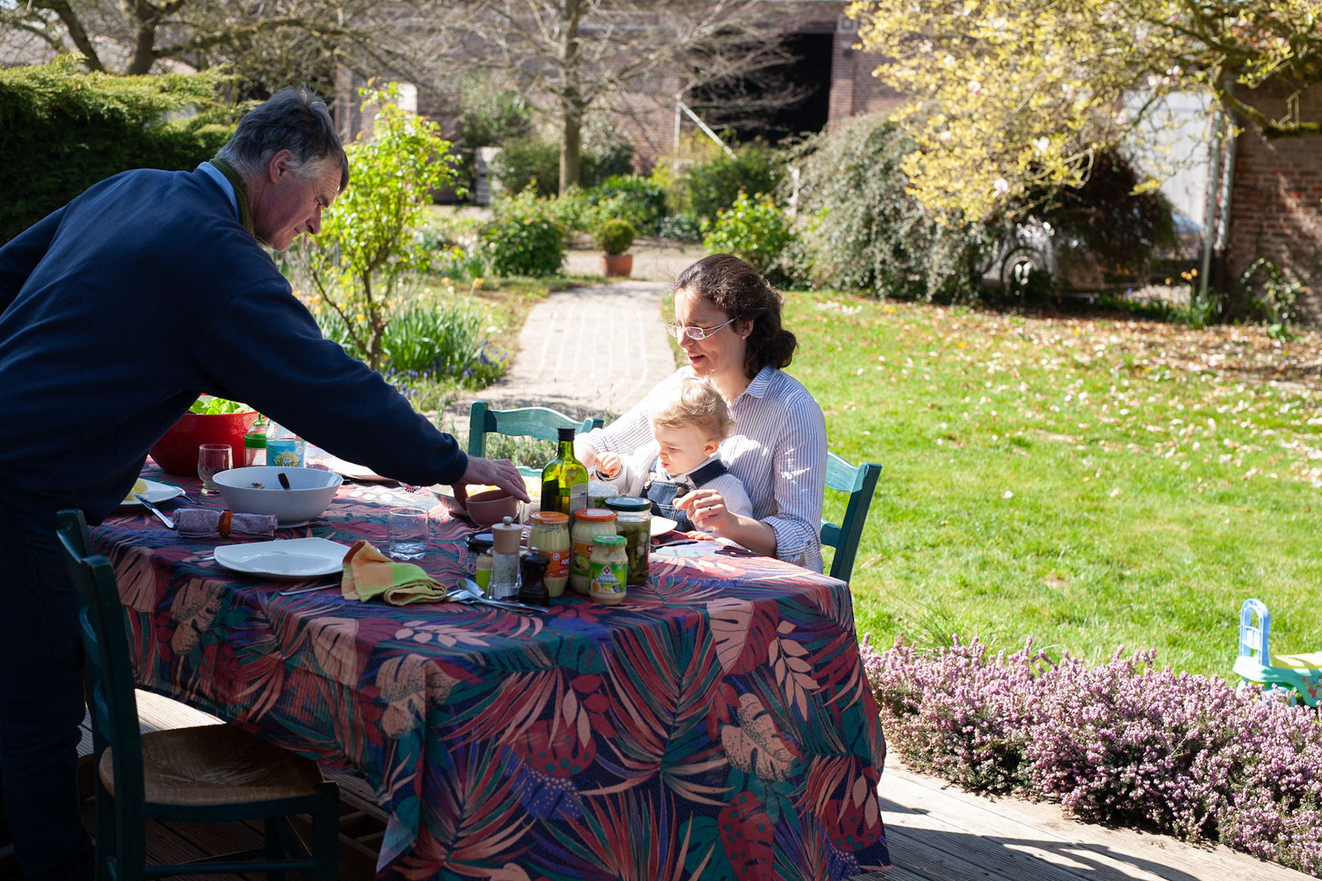 Gabrielle donne à goûter sur la terrasse. Ce sont les premiers beaux jours.