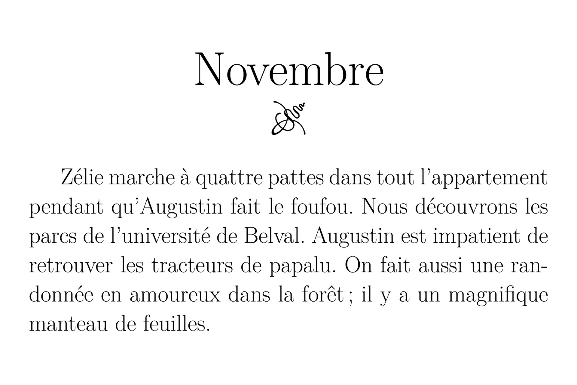 Augustin dans toutes ses activités juste avant la naissance de Zélie. Robot