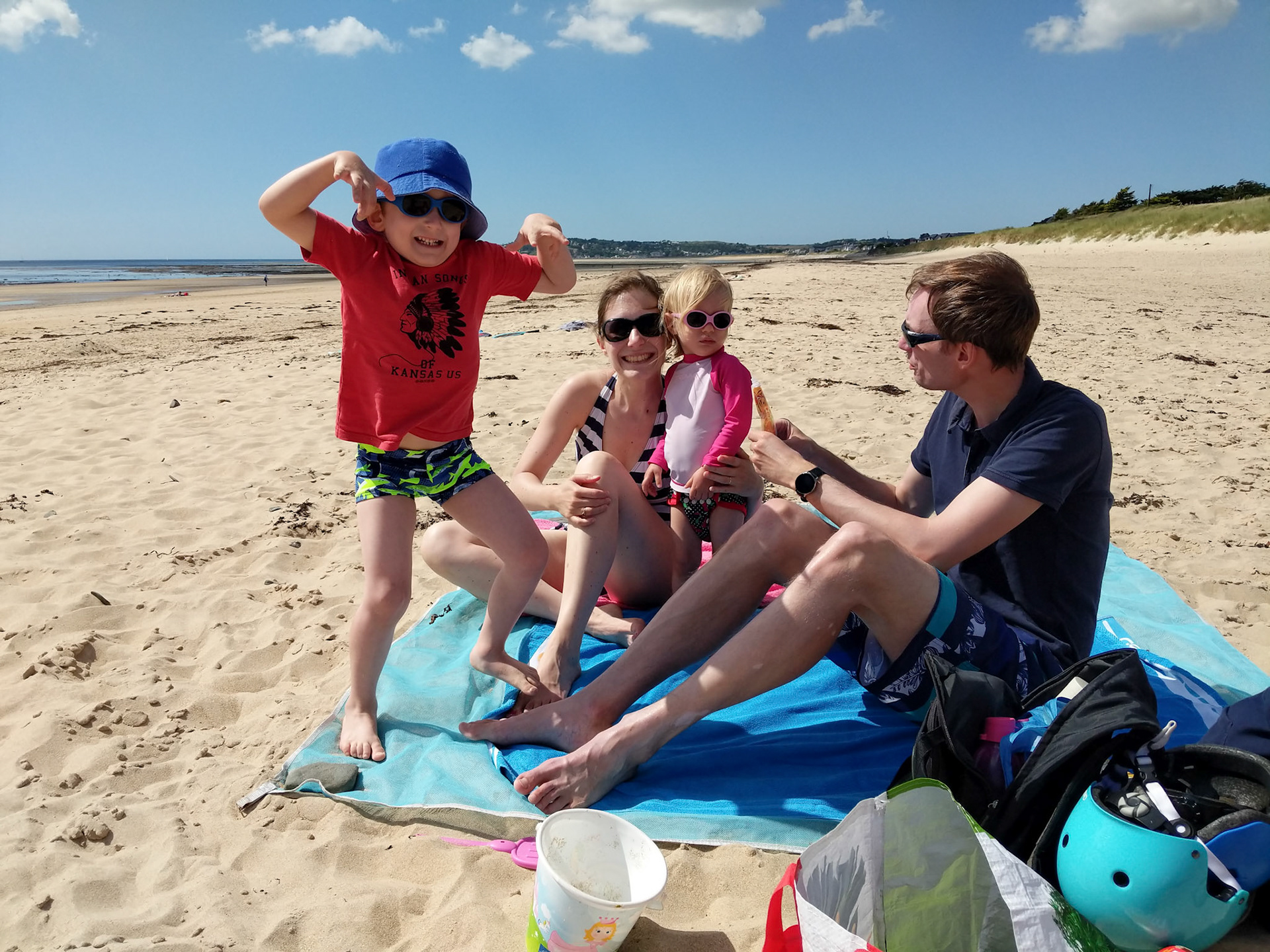 Première journée à la plage, tous ensembles.