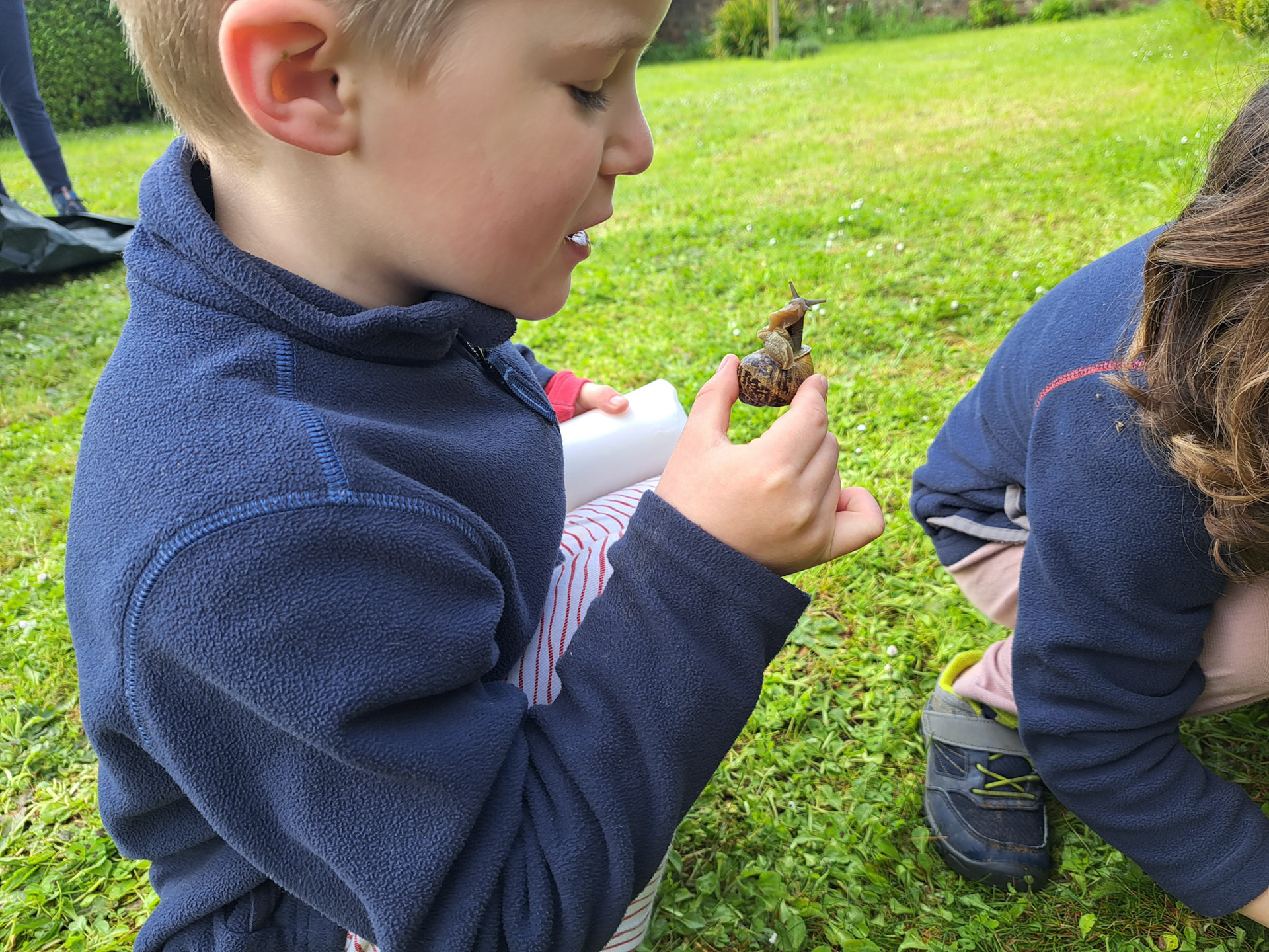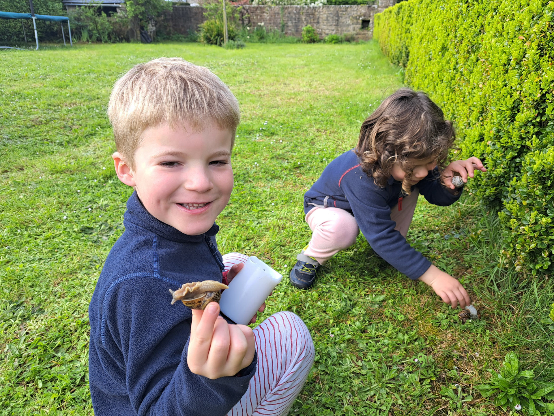 Petit escargot (porte sur son dos... sa maisonnetteuuh... etc.). En chantant, l'escargot sortait ses antennes (sisi !)